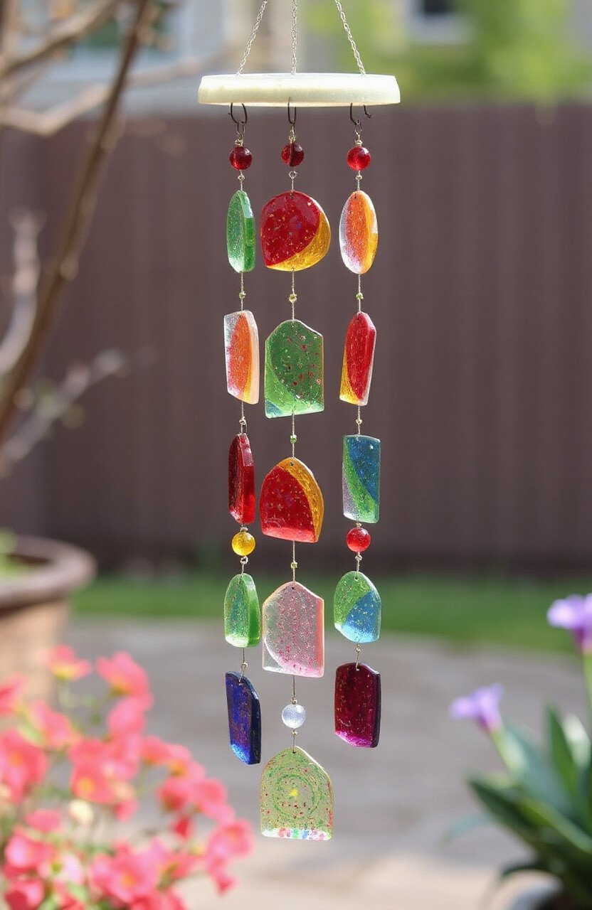This project is perfect for using up small pieces of glass or old CDs. The cost is low, and you can easily customize the colors and shapes. Hang them in your garden or on a porch for a whimsical addition to your decor.
