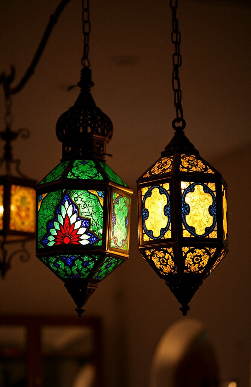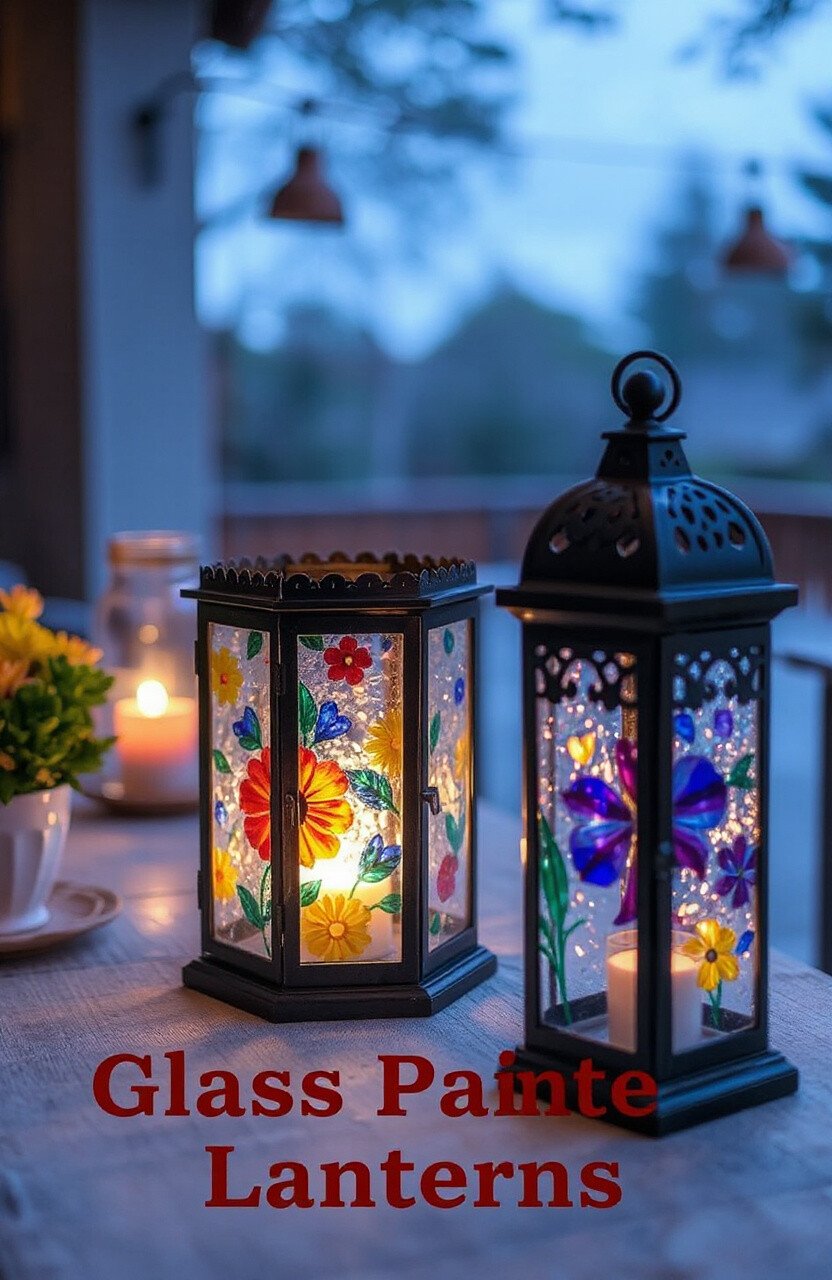 Moroccan lanterns painted with intricate patterns can create a warm, exotic ambiance. These lanterns are known for their detailed designs and vibrant colors. The glass panels can be painted with bold hues to mimic traditional Moroccan styles.