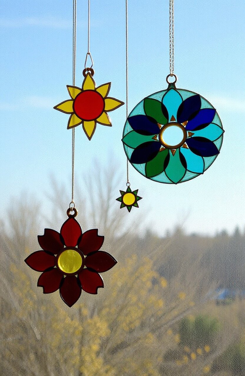 Personalize your sun catchers by choosing colors and designs that match your decor. This project is inexpensive and provides an opportunity to recycle small pieces of glass or old CDs. Experiment with different shapes and sizes for a unique collection.