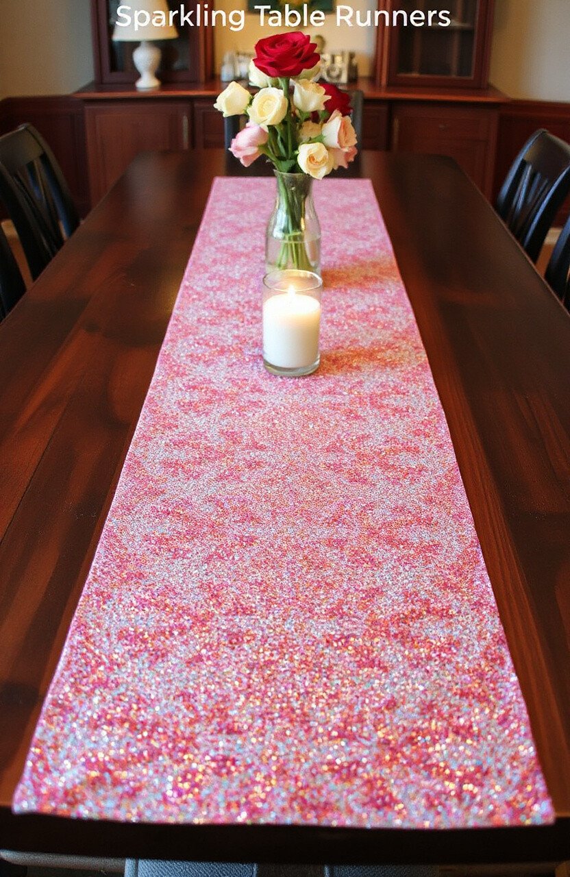 Dress up your dining table with a sparkling table runner. Glitter paint can transform a plain runner into a stunning centerpiece.