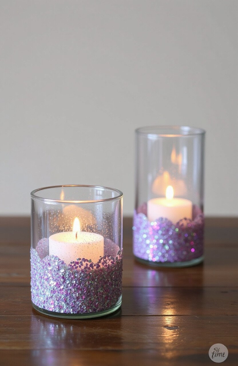 Light up your evenings with enchanting candle holders. Glitter paint adds a magical touch to any candle holder, making it look like a fairy tale object.