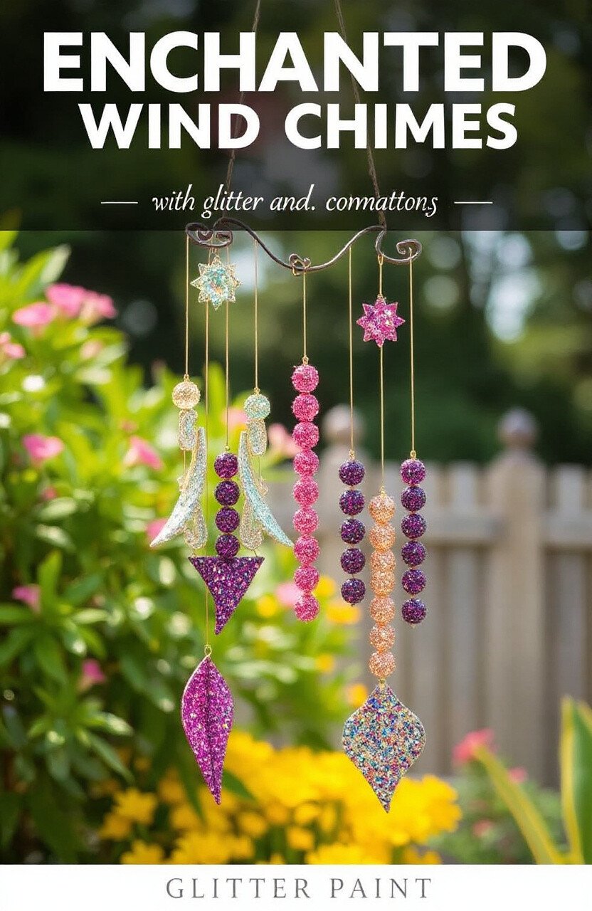Add a touch of magic to your outdoor space with enchanted wind chimes. Glitter paint can make them sparkle in the sunlight.