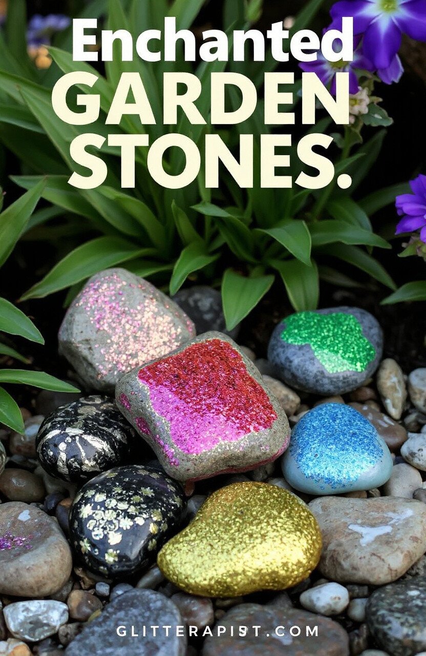 Bring a mystical touch to your garden with enchanted garden stones. Glitter paint can turn ordinary stones into magical path markers or decorations.