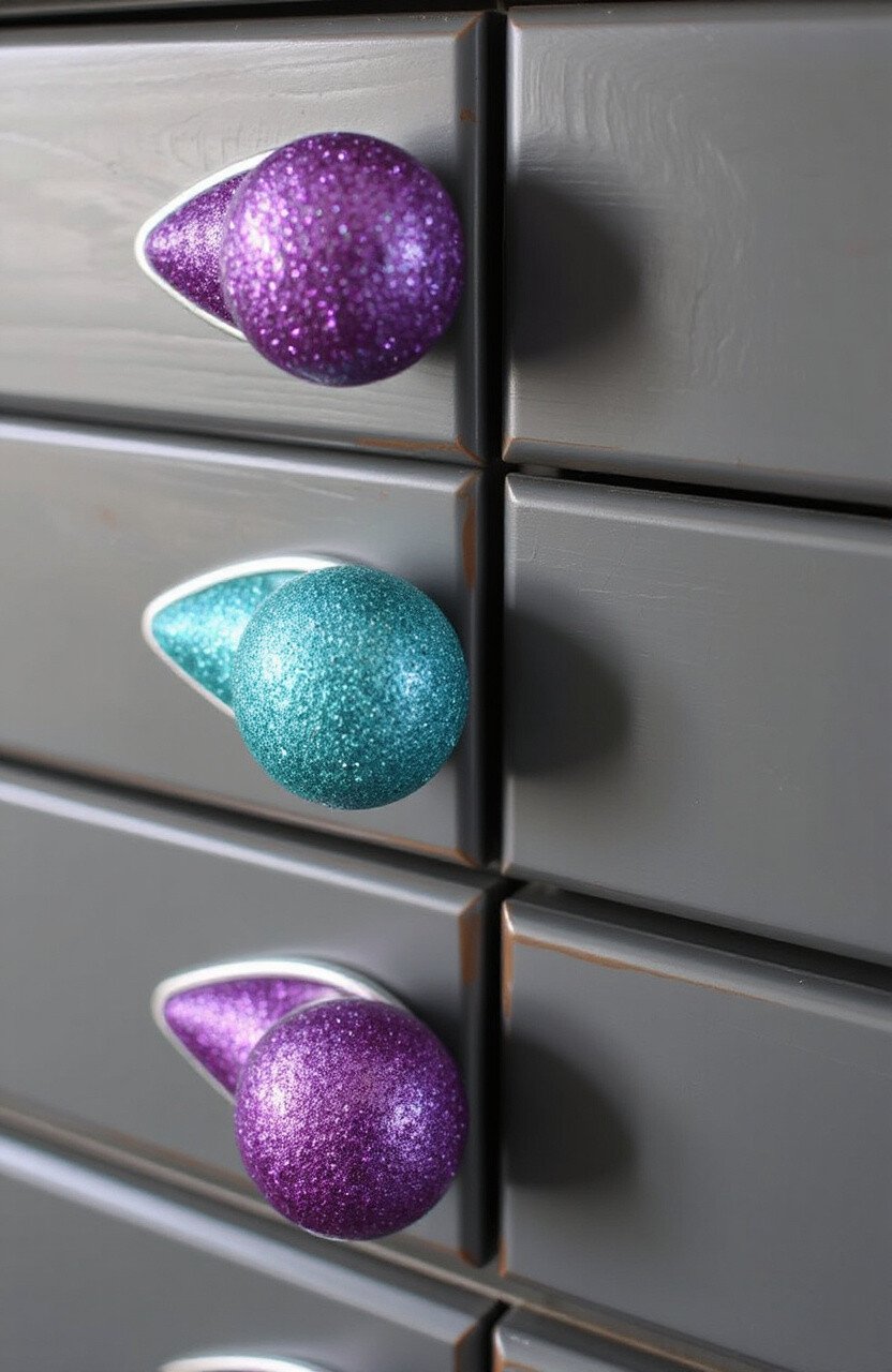 Update your furniture with glittery drawer pulls. This simple change can make a big impact on the look of a room.