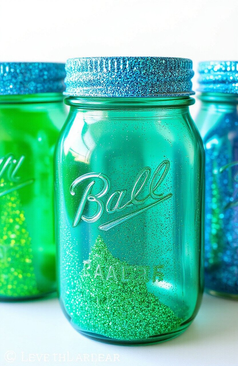 Turn ordinary mason jars into dazzling decorative pieces with glitter paint. These jars can be used as vases, candle holders, or simply as eye-catching accents on shelves.