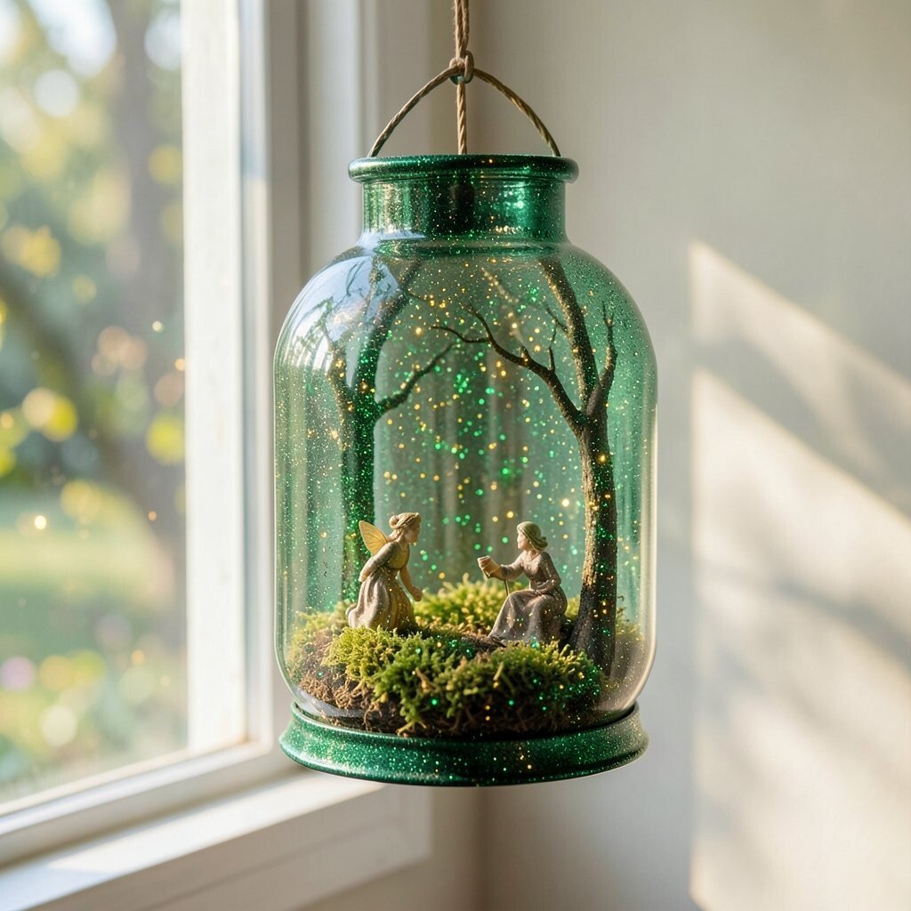 This idea is perfect for nature lovers who wish to bring a touch of the outdoors inside. Hang it near a window where natural light can amplify its sparkle. Add small faux moss and tiny figurines inside for a whimsical touch.