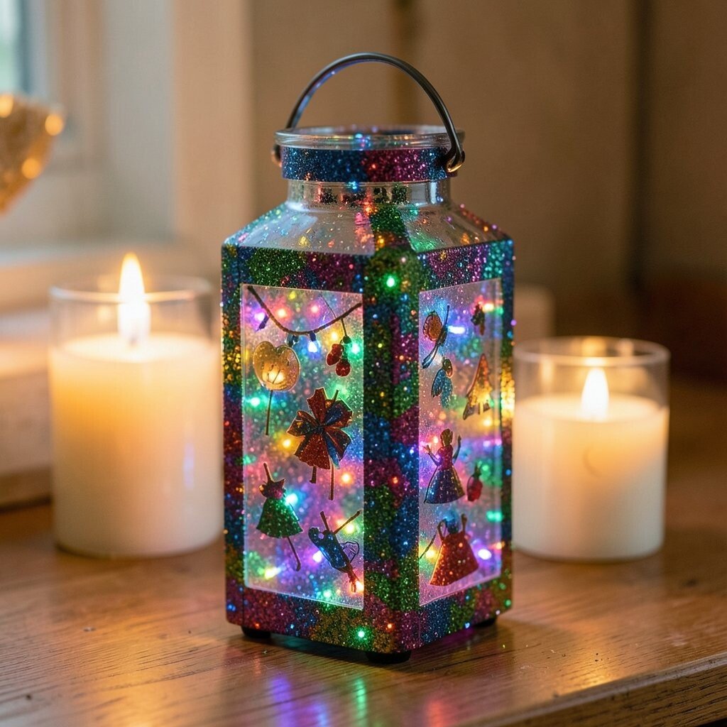 Celebrate with a lantern that captures the joy of festivals. Use bright, bold glitter colors and add tiny LED lights inside for a dazzling display. This lantern brings the excitement of a festival to your home.