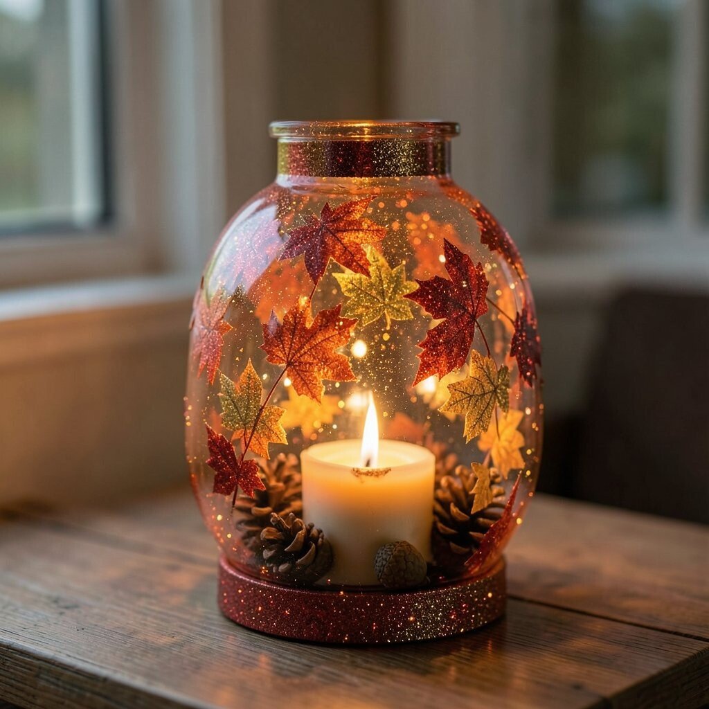 Capture the essence of fall with an autumn glow lantern. Use warm orange, red, and gold glitter to mimic the changing leaves. This cozy design is perfect for the fall season.