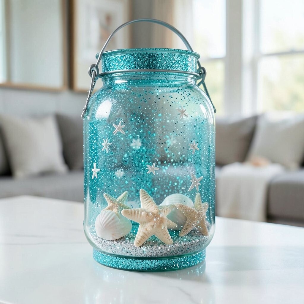 Bring the beach to your home with an ocean breeze lantern. Use turquoise and silver glitter to evoke the colors of the sea. Add seashells or small starfish inside for a coastal touch.