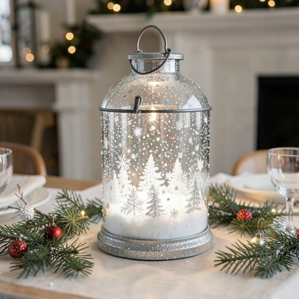 Create a winter wonderland with a lantern filled with white and silver glitter. Add faux snow or tiny snowflakes inside for an authentic winter touch. This lantern sparkles like freshly fallen snow.