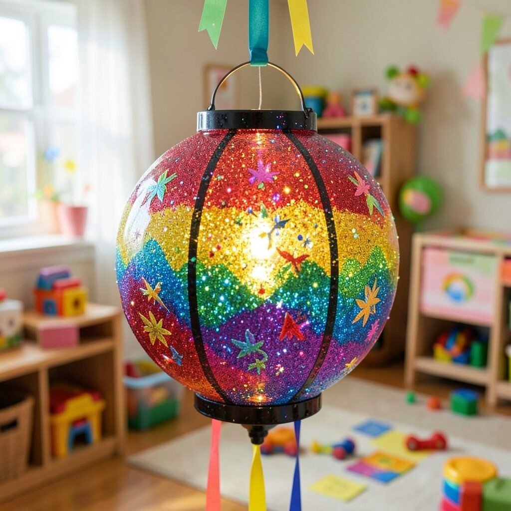 Celebrate life’s colorful moments with a vibrant festival lantern. Use a rainbow of glitter colors to create a lively, joyful design. This lantern can brighten any space instantly.