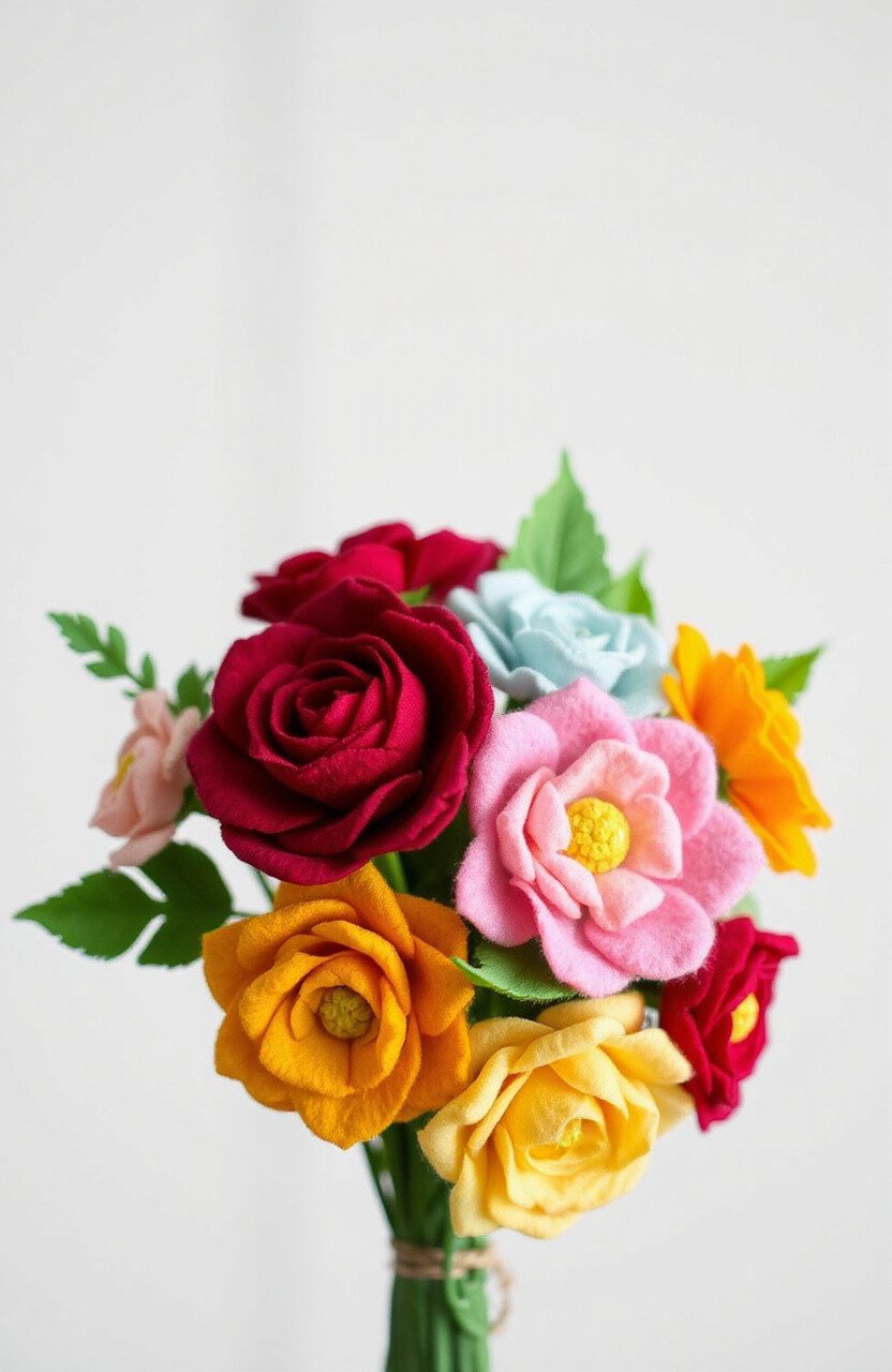 Create everlasting blooms with felt fabric. Cut and assemble petals to form roses, daisies, or any flower you like. Add wire stems and leaves to complete the bouquet.