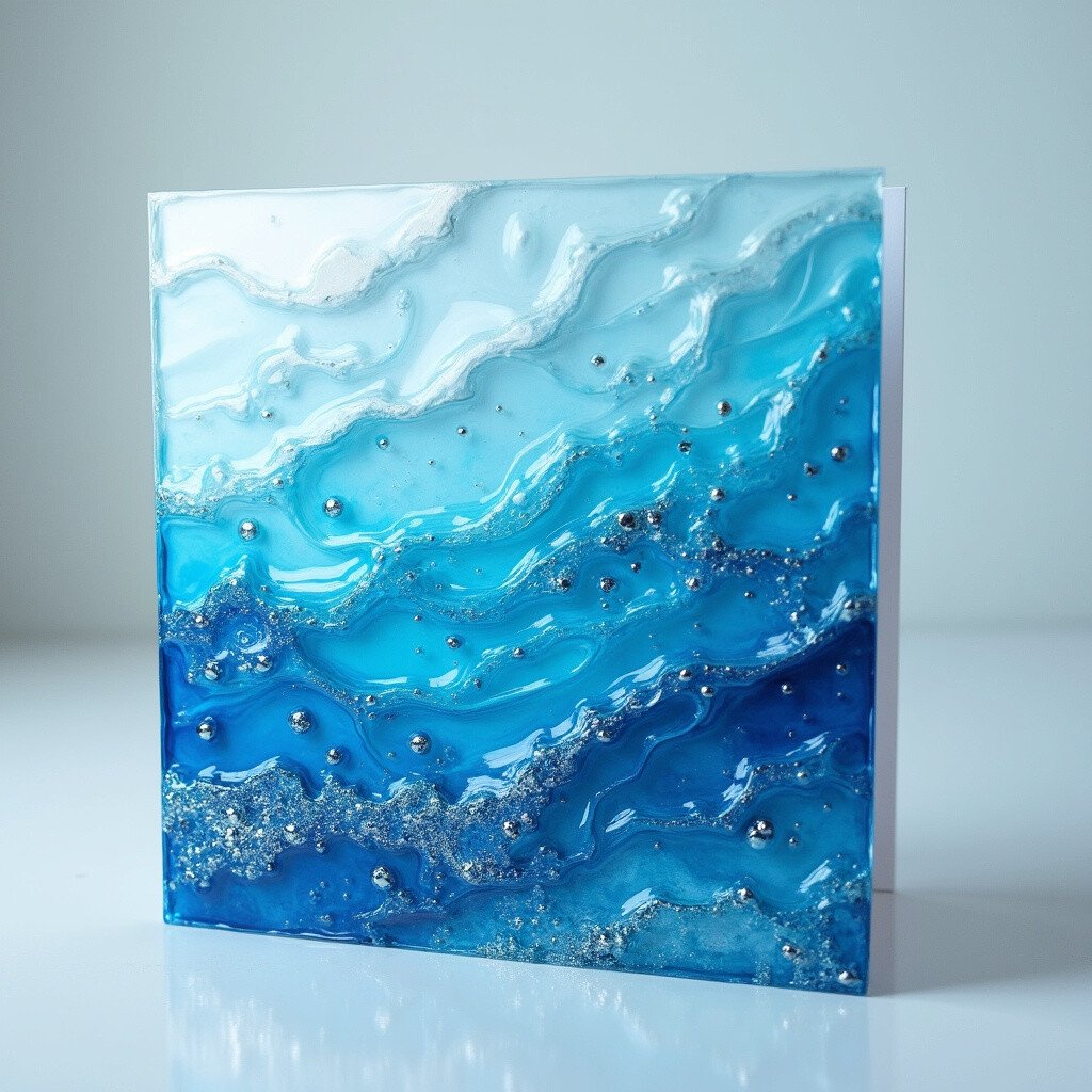 Use resin to create a glossy, ocean-like surface on your card. This technique mimics the reflective quality of water.