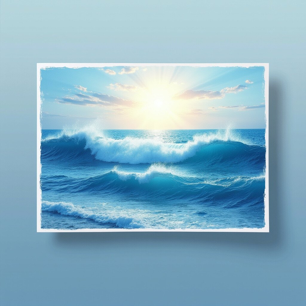 Print out a stunning photograph of the ocean and attach it to your card. Capture the majesty of crashing waves or the peacefulness of a sunset over water.