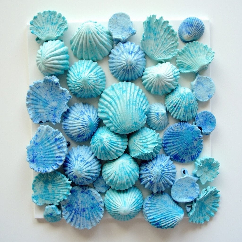 Gather seashells and paint them in various shades of blue and green. Glue them onto your card for a tactile and eye-catching design.