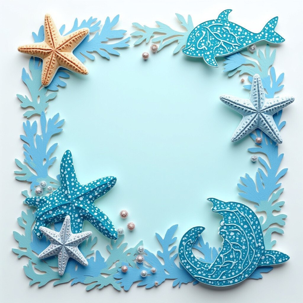 Create cutouts of sea creatures like starfish, dolphins, or turtles and glue them onto your card. Use glitter or metallic pens to add sparkle and life.