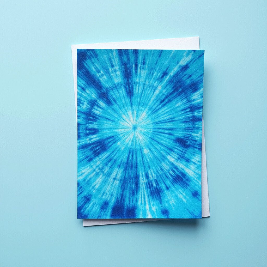 Try tie-dye techniques with different shades of blue on your card. This vibrant and fun method will create a unique and colorful design.