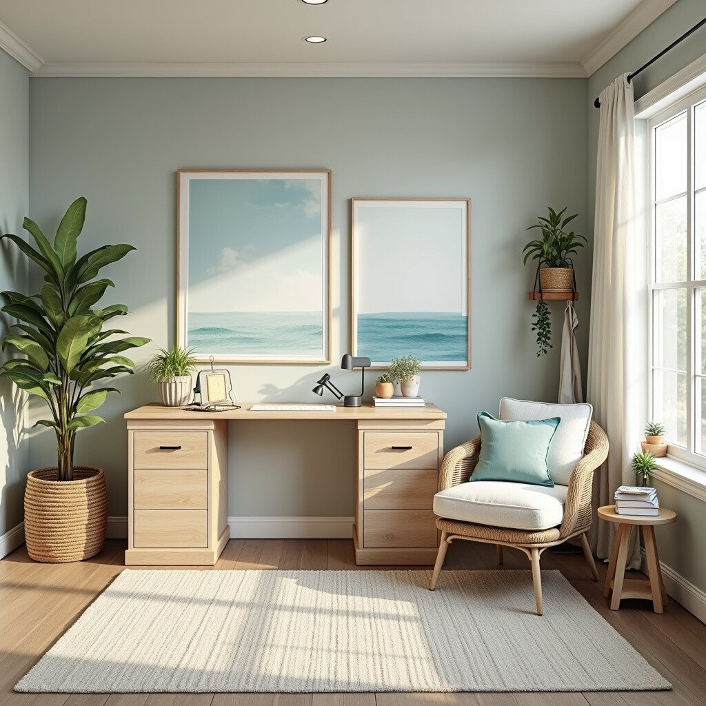 This tranquil space transports you to a seaside retreat. Include a hammock or beach chair for relaxation. It’s a peaceful, refreshing space that stimulates creativity.