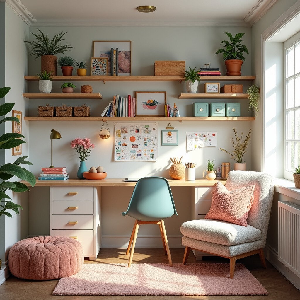 With shelves filled with colorful supplies and a small desk, it’s perfect for quick projects. Personalize it with your favorite colors and patterns for a unique touch. A cozy nook is budget-friendly, using items you already own!