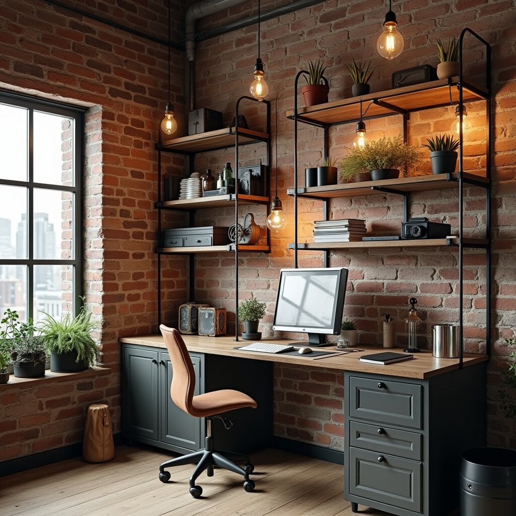 Channel the urban vibe with an industrial-themed hobby room. Use metal shelves, exposed brick, and Edison bulbs.