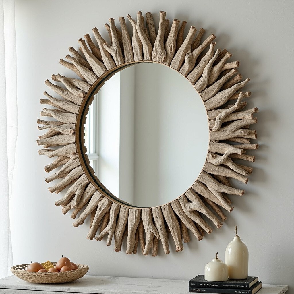Mirrors can make a room feel larger and brighter. Why not add a decorative frame made from driftwood or painted tiles?