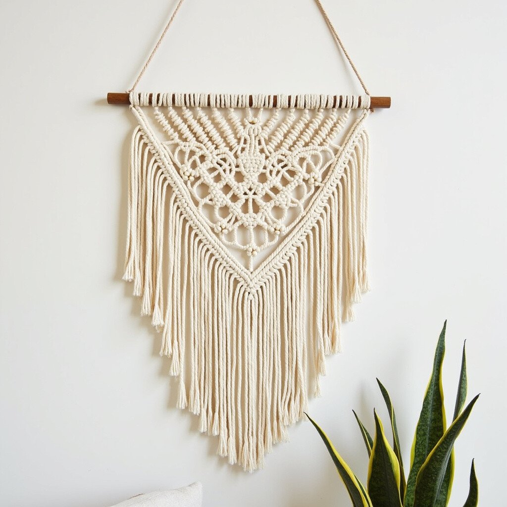 Macramé wall hangings add a touch of bohemian flair to any space. With just some cotton cords and a wooden dowel, you can create intricate patterns that will amaze anyone who walks into your home.