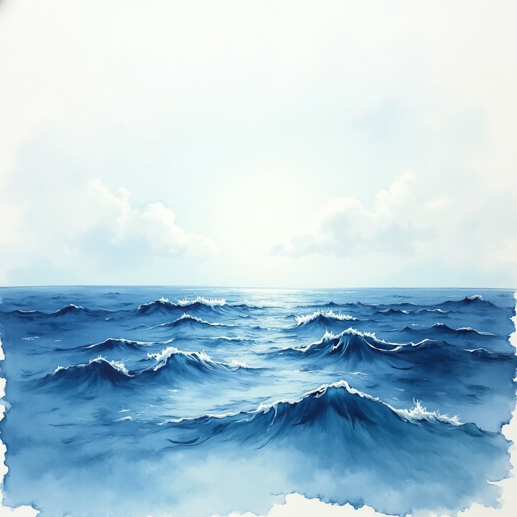 The ocean’s vastness and mystery can be beautifully captured with ink wash. Imagine the gentle waves and distant horizon, all painted in soft blues and greys.