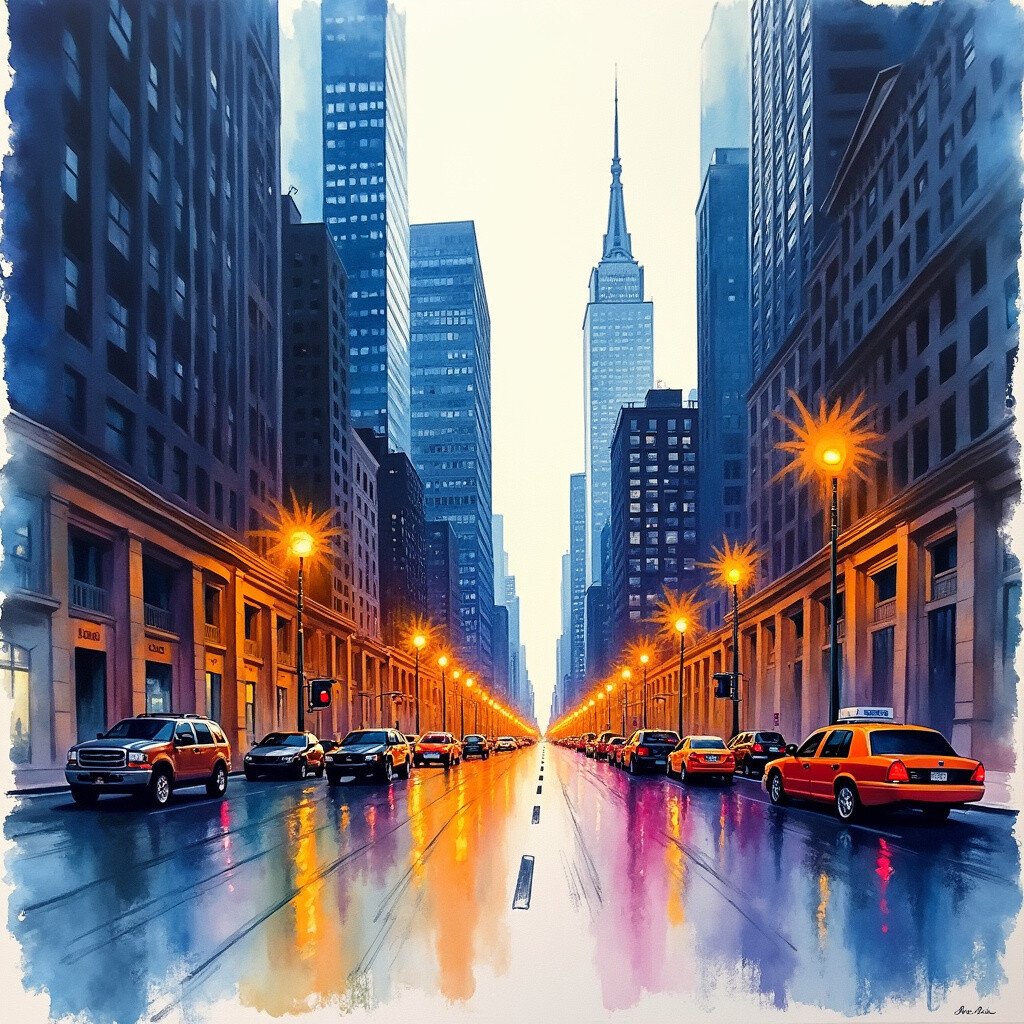 Bring the energy of the city to life with ink wash. Skyscrapers, bustling streets, and city lights can all be captured in vibrant detail.