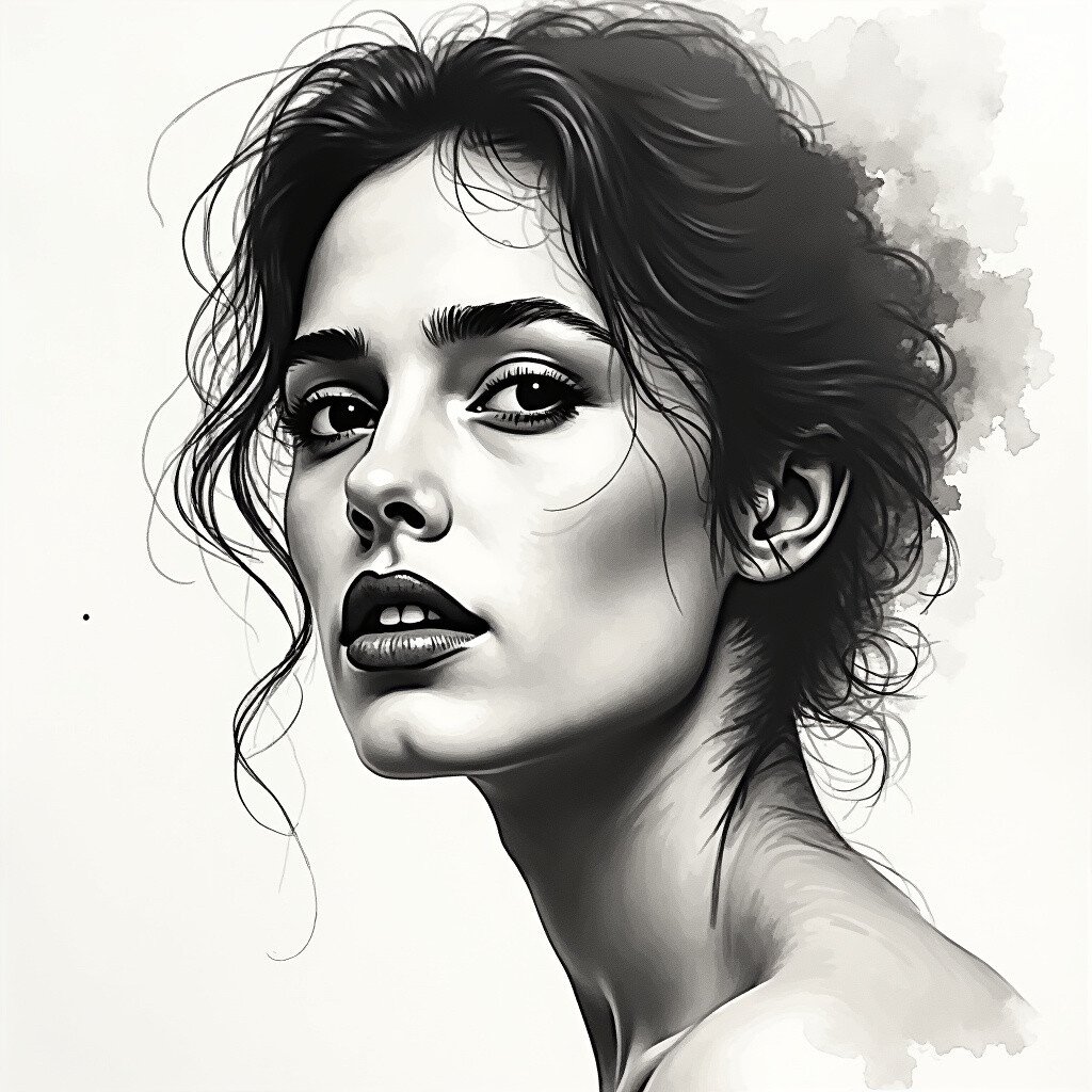 Capture the essence of a person with expressive ink wash portraits. Focus on emotion and movement rather than detail.