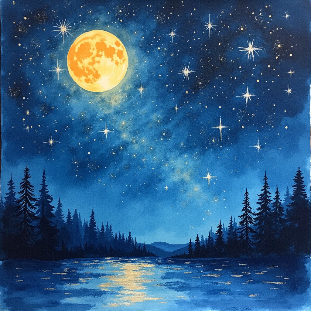 Who doesn’t love gazing at the stars? With ink wash, you can create a dreamy night sky full of twinkling stars and a glowing moon.