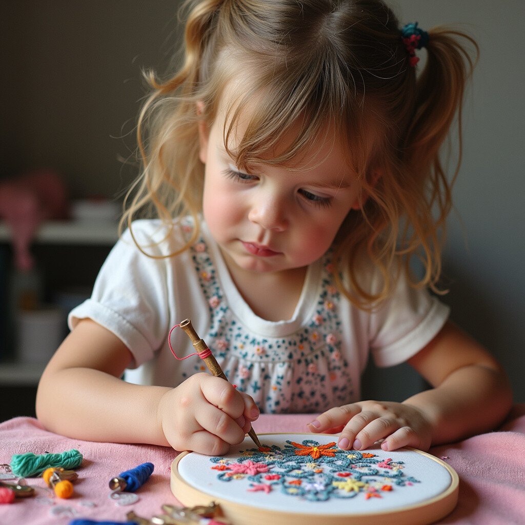 Embroidery improves concentration and fine motor skills. Personalize with your own designs or follow patterns for guidance. Use vibrant threads for a pop of color and style.