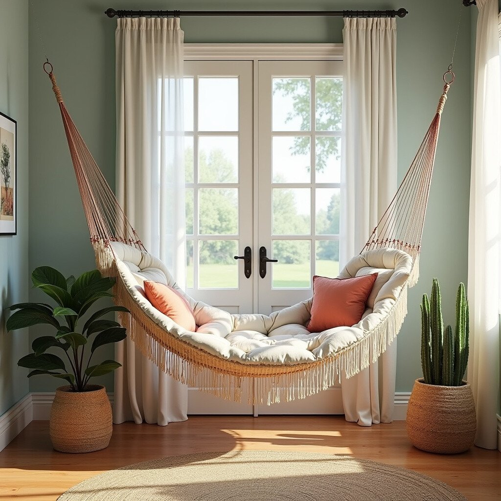 Hammocks offer a fun and relaxing seating option. They’re unique because they sway gently, reminiscent of a breezy beach day.