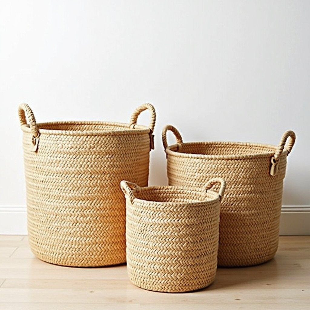 These baskets add a touch of texture and warmth. Plus, they’re sustainable and durable. Use them to store blankets, magazines, or even as plant holders.