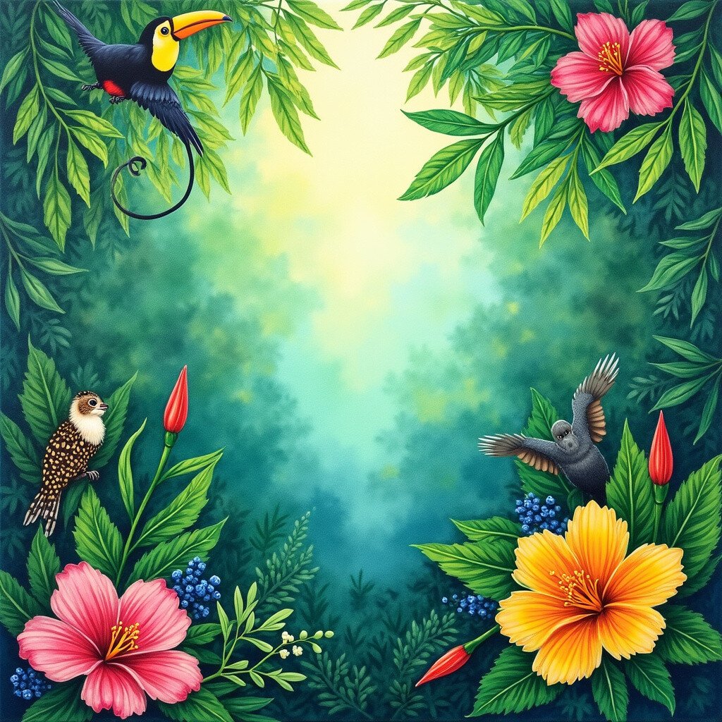 Creating a rainforest scene can be a therapeutic way to engage with nature. Personalize it by adding animals like toucans or monkeys, and let your imagination run wild.