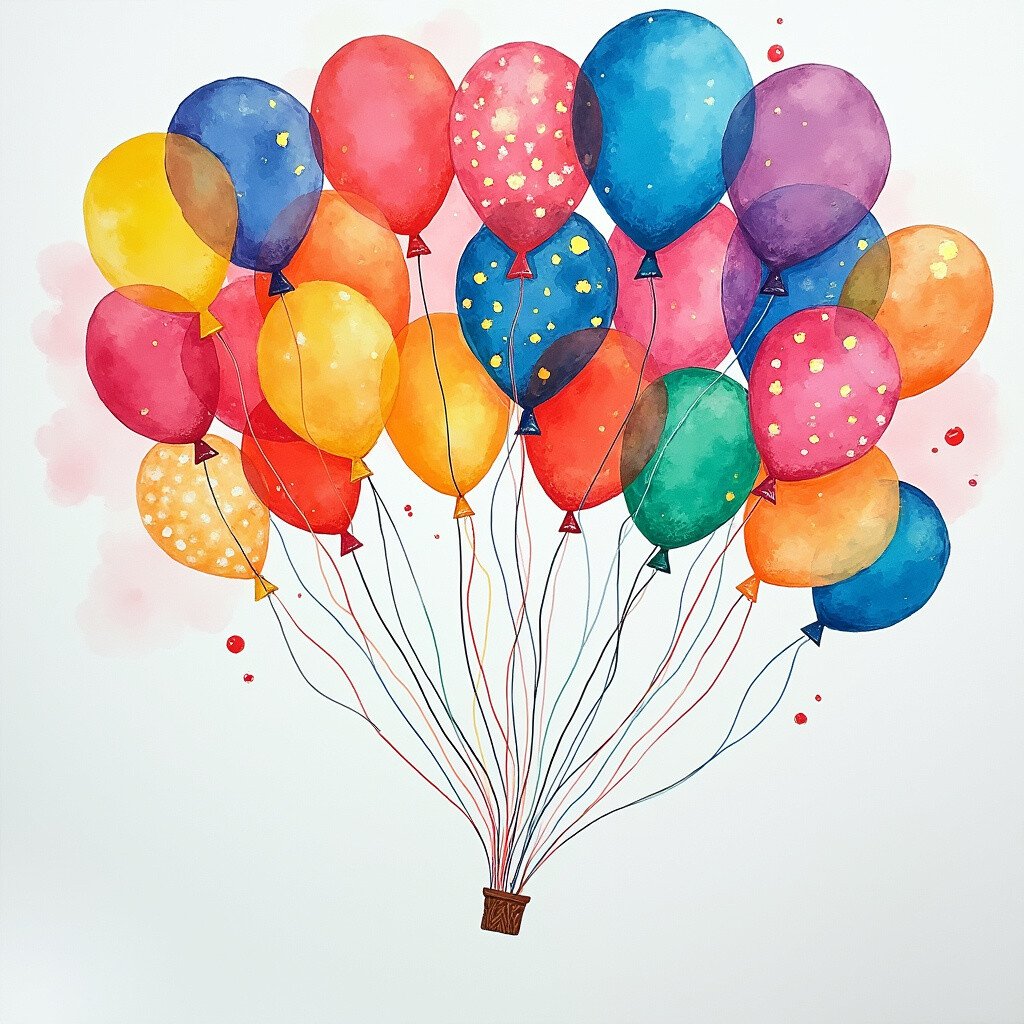Fill your paper with colorful balloons floating across the sky. Use bright and cheerful colors that bring a smile to anyone’s face.