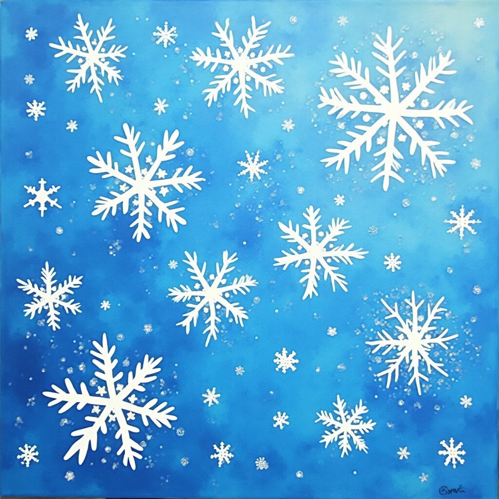 Create delicate snowflakes using white on a blue background. Finger painting allows you to craft intricate patterns with ease.