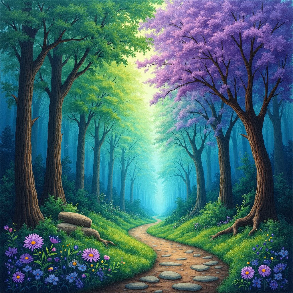 This artwork is perfect for those who love fantasy and adventure. Incorporate magical creatures or hidden paths to make it uniquely yours.