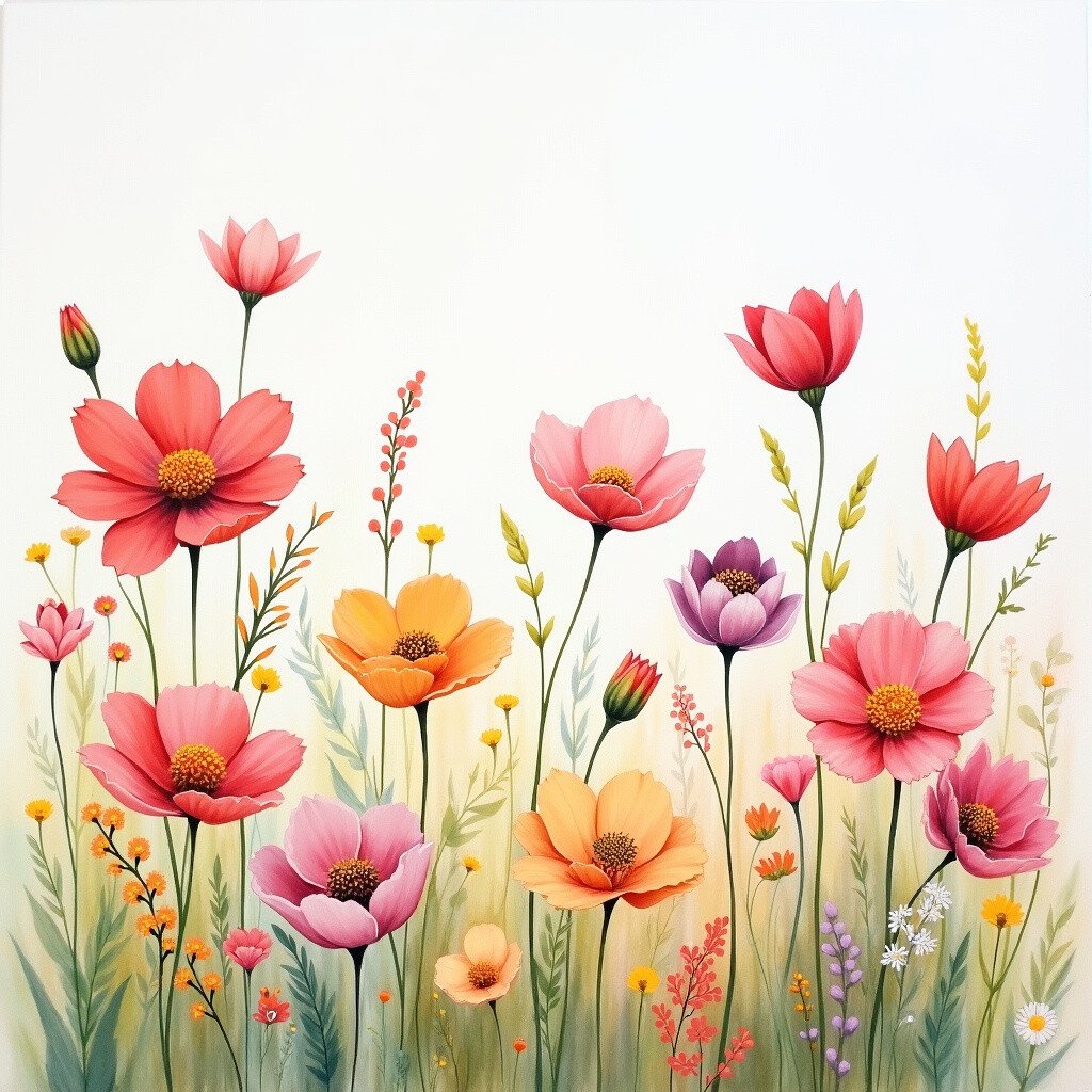 Paint a dreamy field of flowers with soft pastels and gentle strokes. Let your fingers glide to create petals and stems.