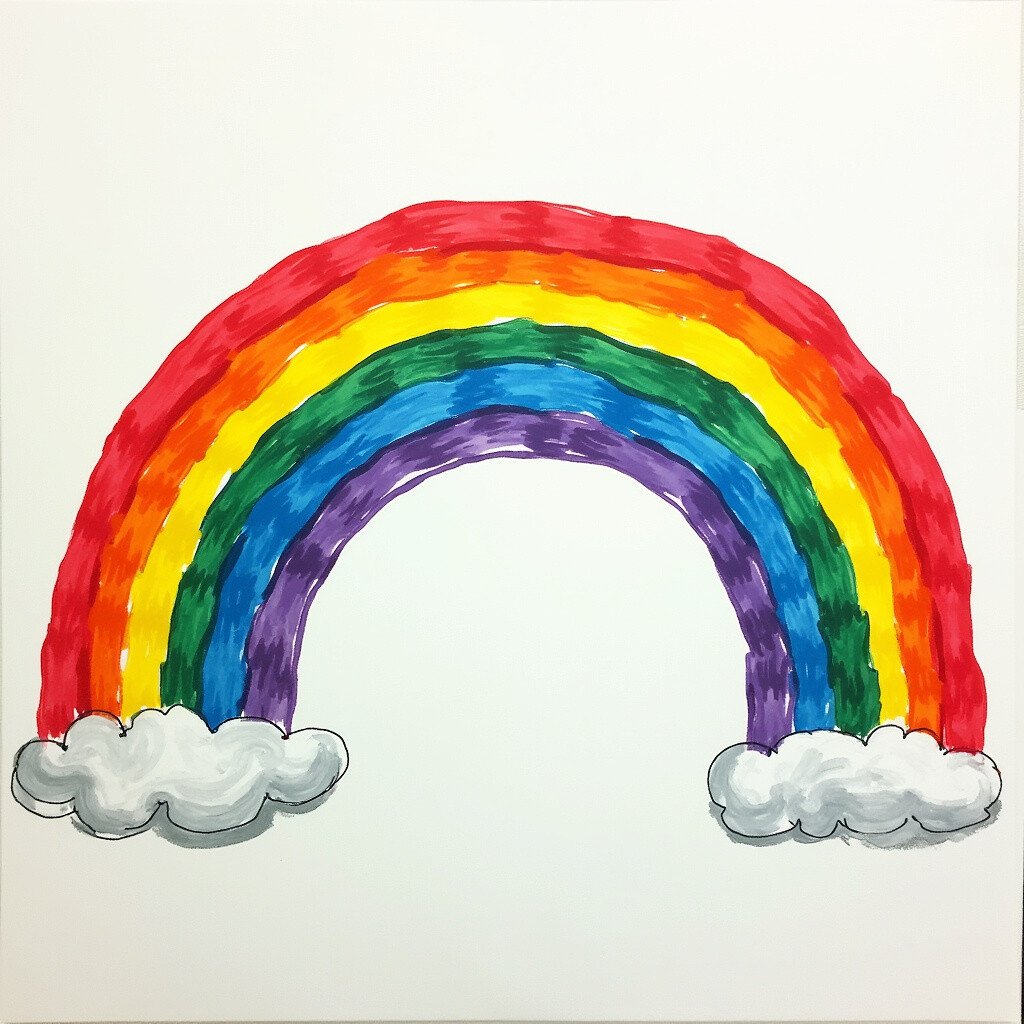 Paint a vibrant rainbow arcing across your paper. Use every color in your gouache set for a bright and joyful piece.