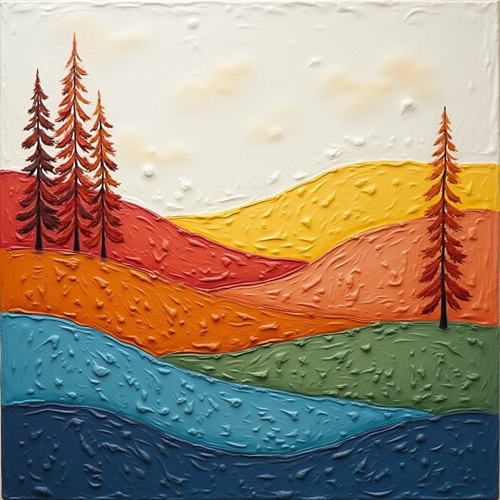 Think of a landscape where every hill and tree is alive with texture. You can start with a base layer of gouache and then add more layers, letting each one dry before applying the next. This builds up a rich, tactile surface.