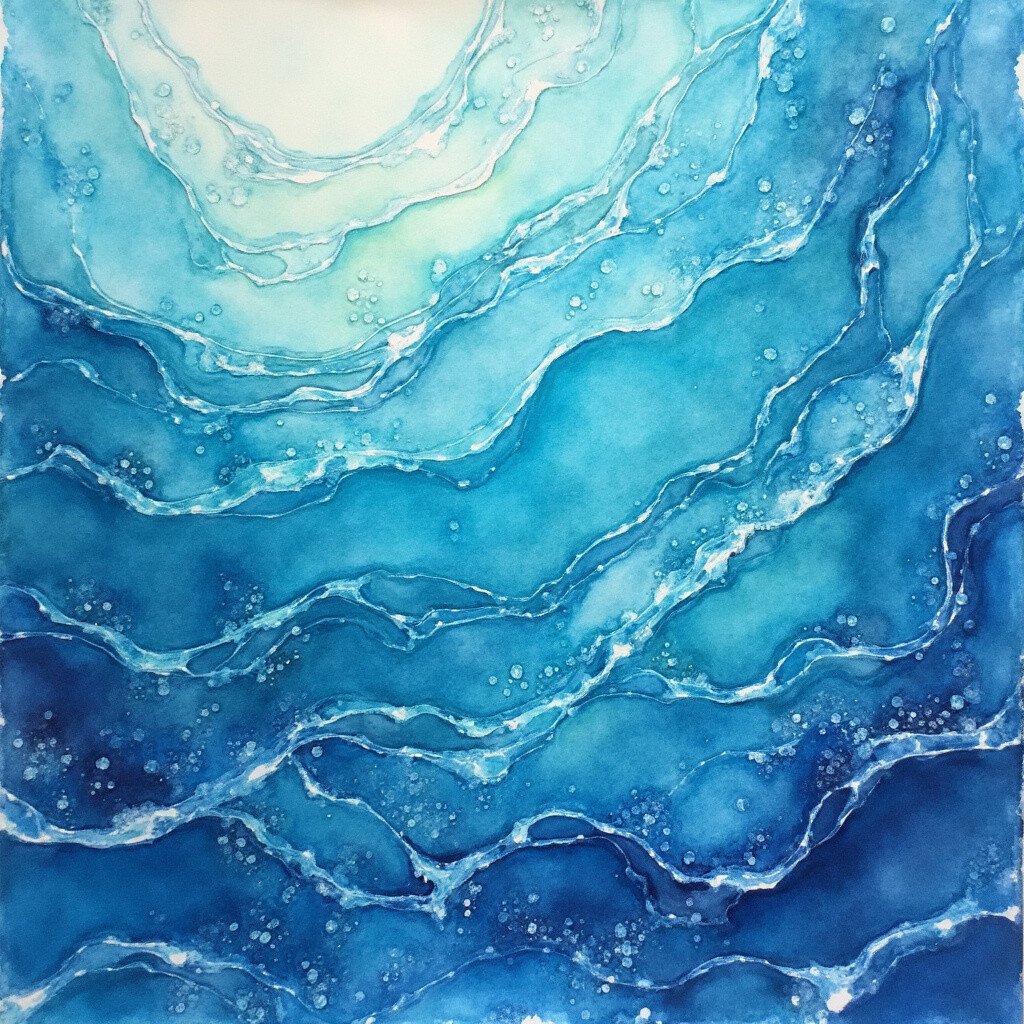 Dive into the sea with bubbly ocean waves. Using bubble wrap on wet watercolor can create the illusion of foamy, crashing waves. Press the bubble wrap onto the paint and watch as it forms a textured, lively ocean.