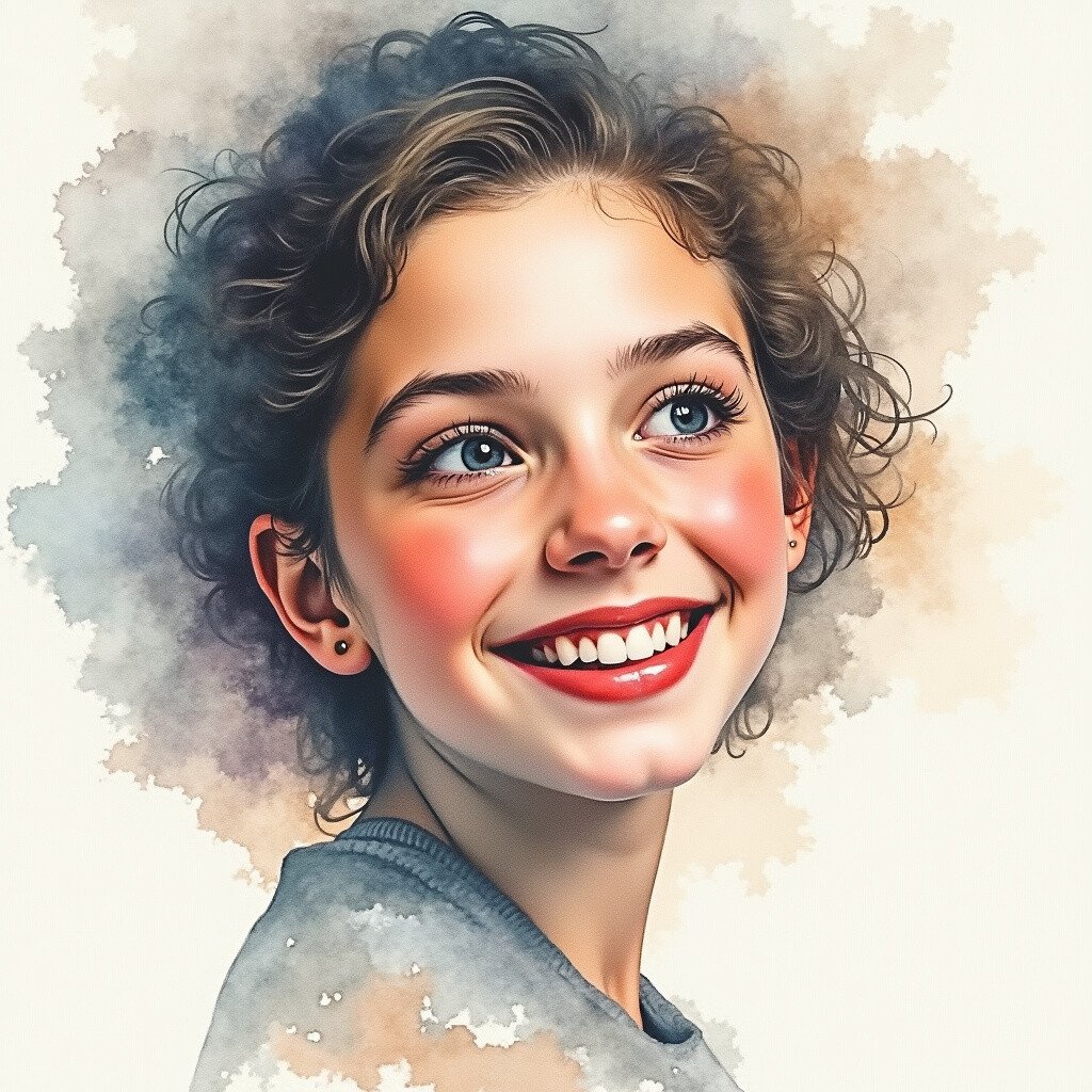 - 🎄 Smiling girl, watercolor portrait, 15 x 11 inches, 2022 year. … from reddit.com.