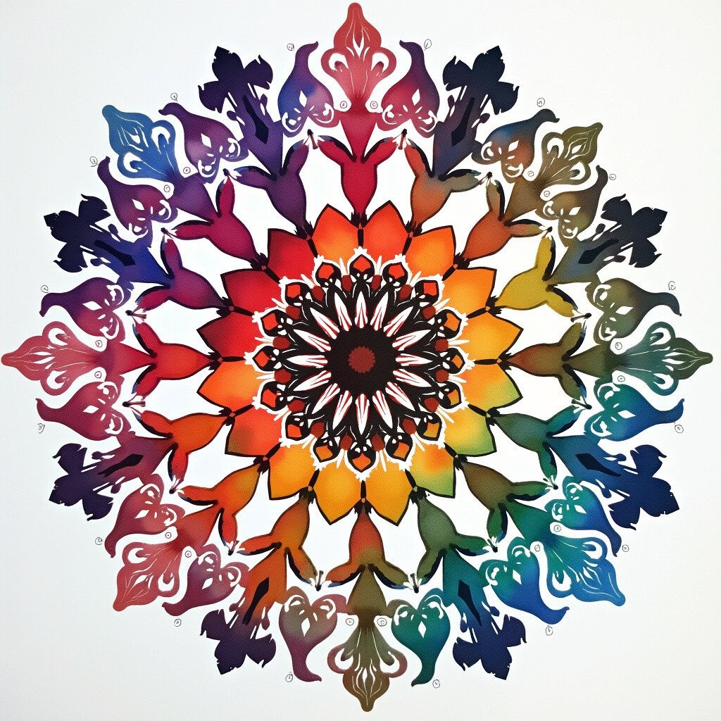 This technique is great for relaxation and meditation, offering a calming effect. It’s cost-effective, needing only stencils and watercolor paints. Personalize by choosing your favorite colors or adding metallic paints for a touch of elegance.