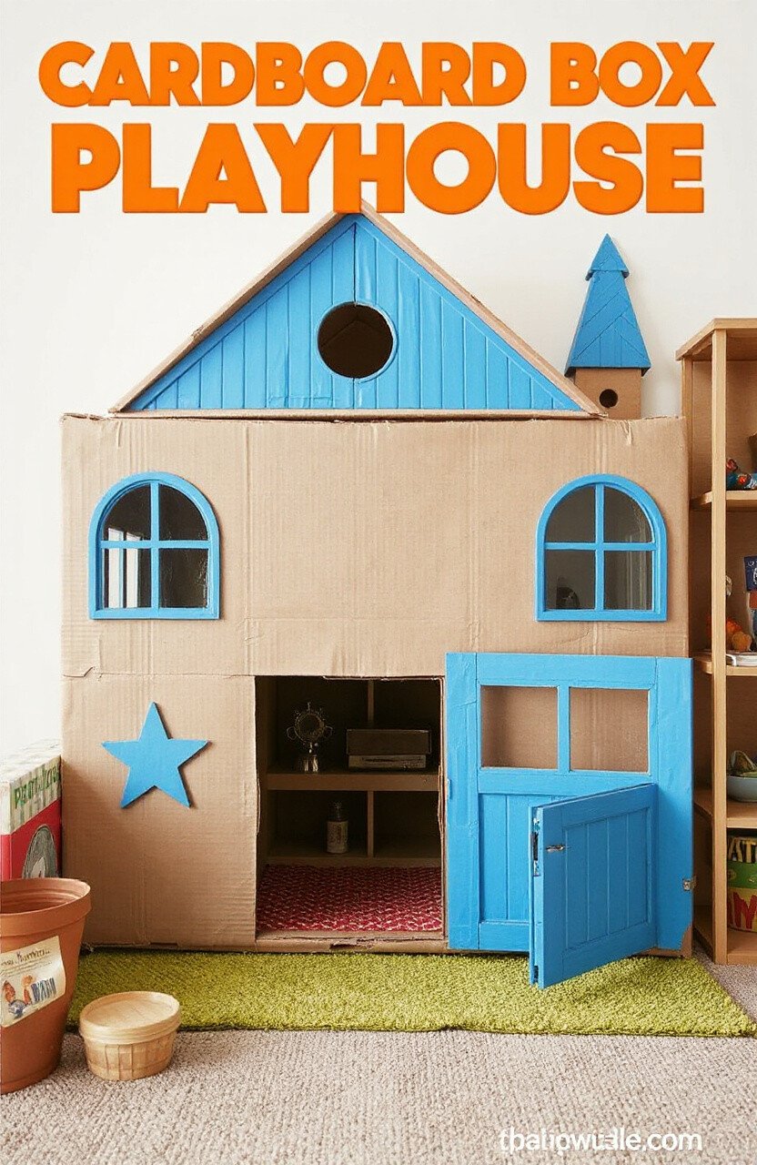 Kids can paint and decorate the box, adding doors, windows, and even furniture. It’s a cost-effective way to create a play space, using materials you already have.