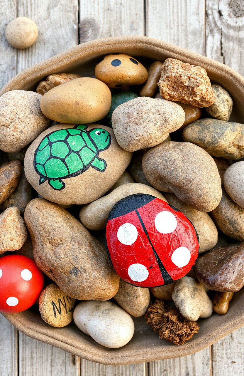 Adopt a rock and paint it into a pet. With paint and brushes, kids can create ladybugs, turtles, or even rock monsters.