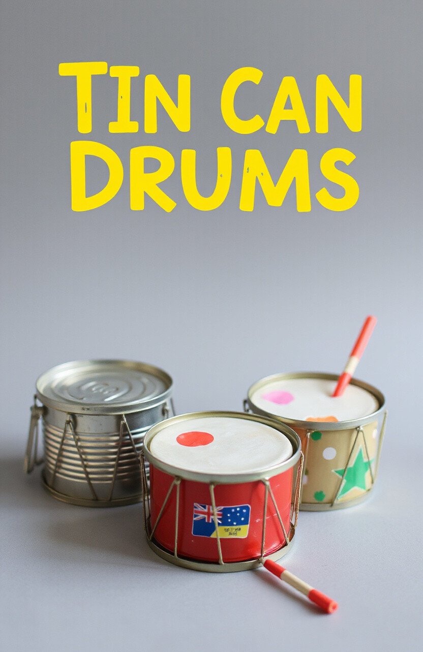 Make music with tin can drums. Cover empty cans with balloons to create drumheads, then let kids decorate them with paint and stickers.
