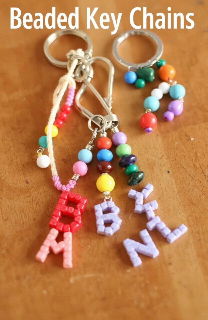 These key chains make wonderful gifts for family and friends. A bag of beads and some string are all you need to get started.