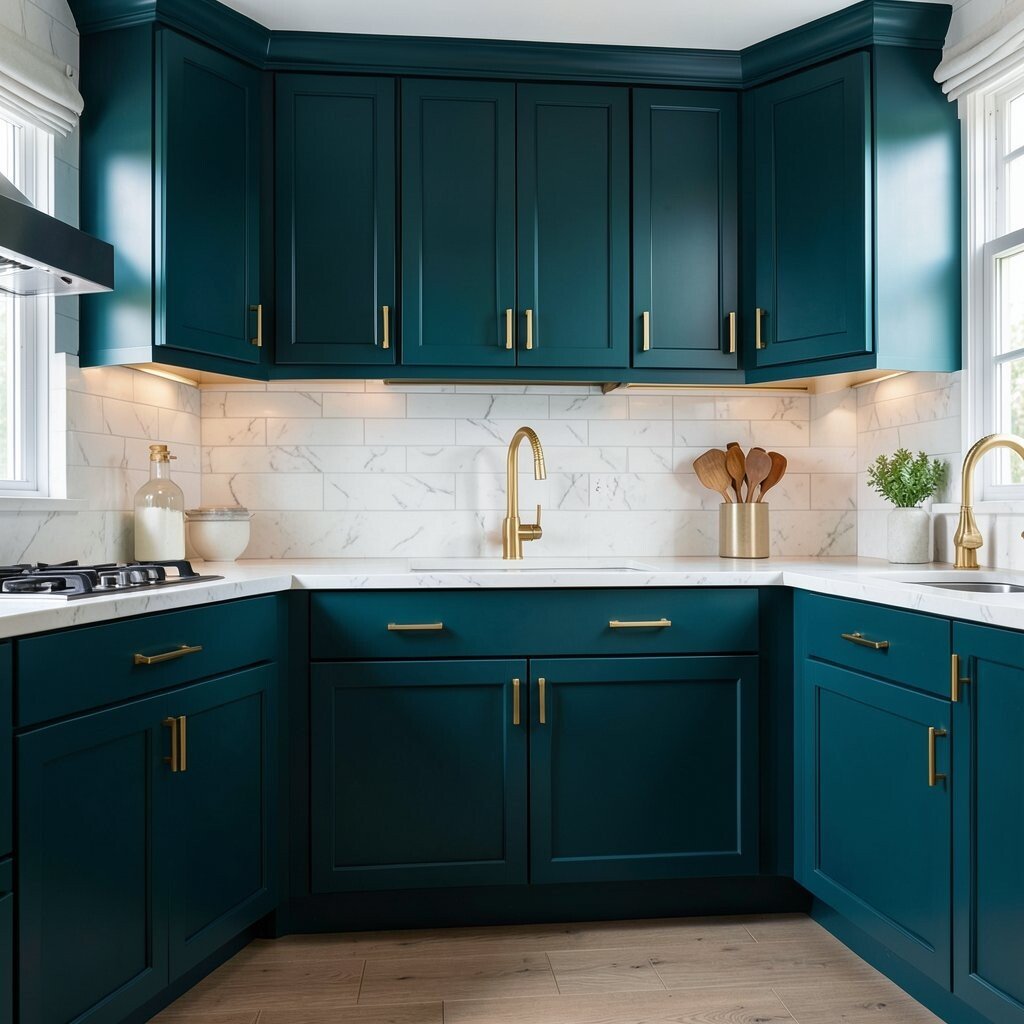 Teal is rich and sophisticated. It adds a touch of elegance and drama to your kitchen. This color is perfect for a stylish and refined look.