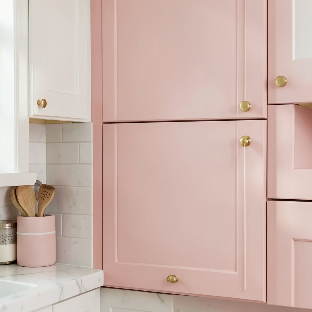Pair blush pink with white or gold hardware for a chic, feminine look. It’s a subtle way to introduce color without overpowering the space.
