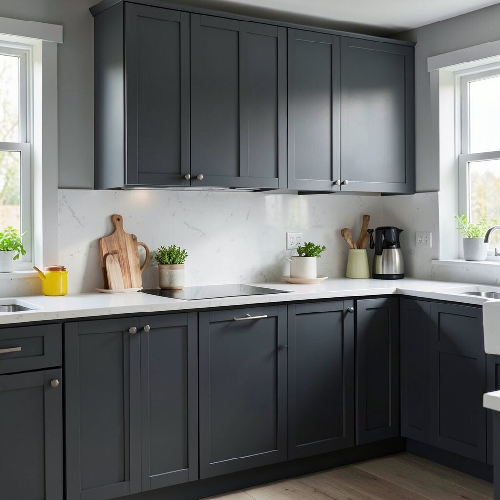 Charcoal gray is sleek and sophisticated. It offers a modern, elegant look that’s versatile and stylish. This color is perfect for a contemporary kitchen.